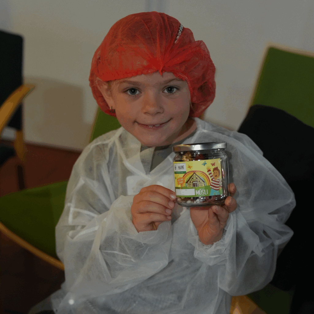 🔺 Und als kleine Produktentwickler:innen mischten sie ihr ganz persönliches Müsli – in liebevoll etikettierten Gläsern, die sie stolz mit nach Hause nahmen.