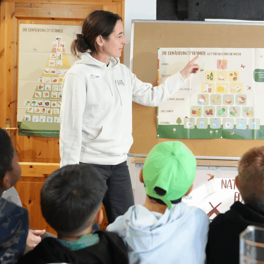 (Mit unserer Initiative „Frühstück auf dem Hof“ setzen wir uns seit 2010 dafür ein, Grundschüler:innen und Lehrkräfte für die Bedeutung ökologischer Landwirtschaft und nachhaltiger Ernährung zu begeistern. Der praxisorientierte Ansatz schafft Verständnis für eine Landwirtschaft im Einklang mit der Natur und fördert die Wertschätzung für Lebensmittel.)